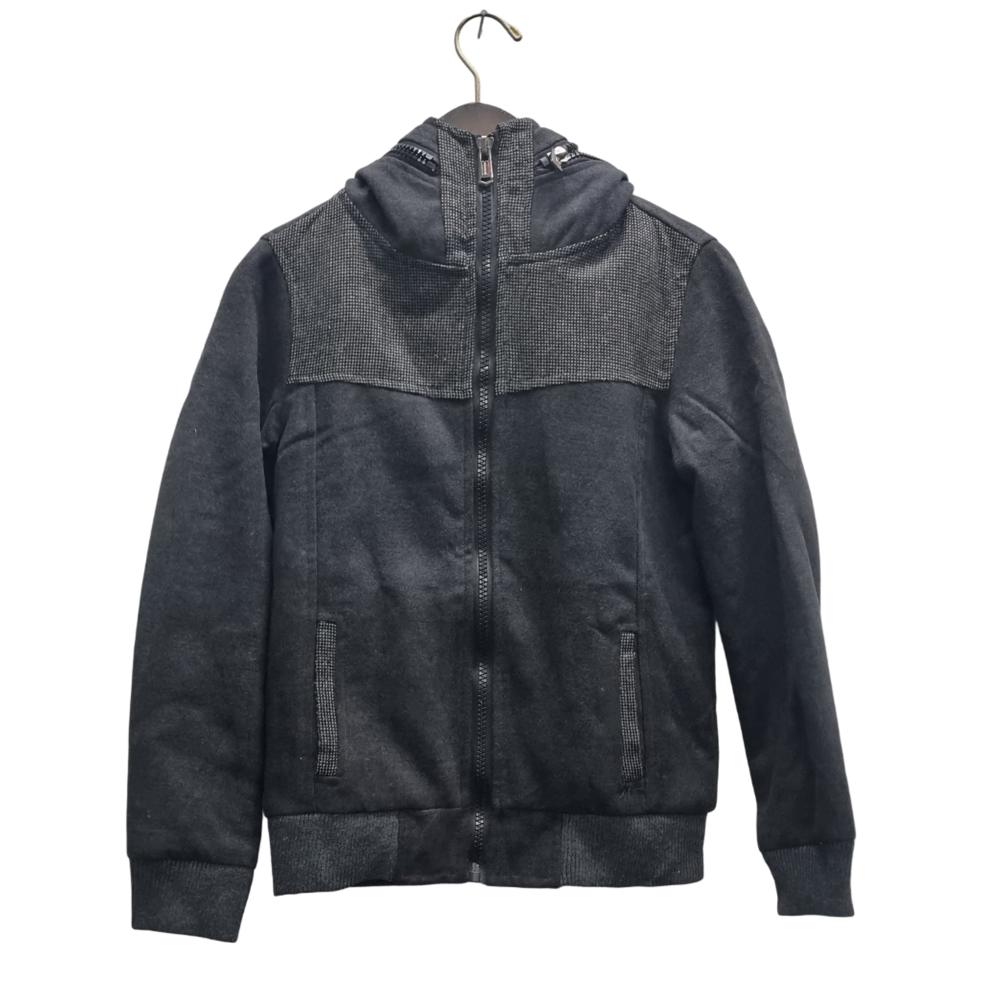 This thrifted men's hooded jacket is a stylish addition to any wardrobe. Made with a focus on sustainability, this jacket offers durability while also showcasing a sense of thriftiness. Stay warm and stylish while making an eco-friendly choice.