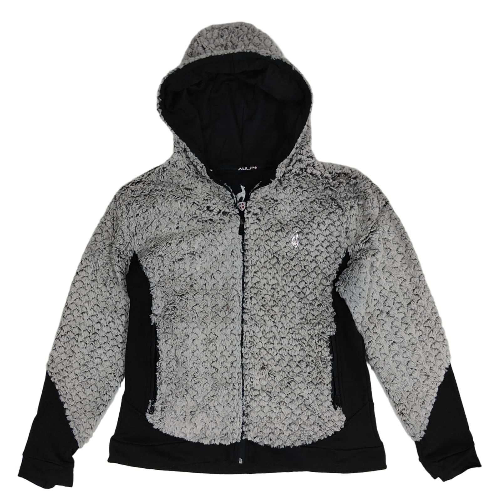 AULP Women's Hooded Fleece Jacket - Black & White (L)